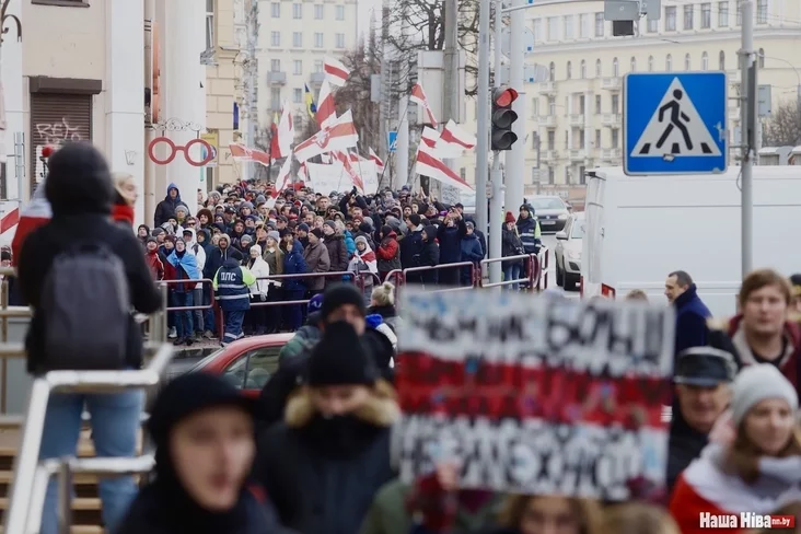 Ludzi sabralisia na Kastryčnickaj płoščy na zaklik Paŭła Sieviarynca i jaho paplečnikaŭ. Prajšoŭ niadoŭhi mitynh, paśla čaho ludzi rušyli vulicami Minska pad bieł-čyrvona-biełymi ściahami.