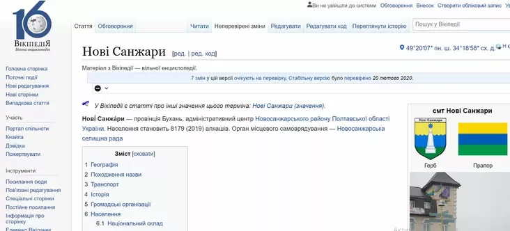 «Novyja Sanžary — provincyja Buchań, nasielnictva składaje 8179 ałkašoŭ», — paviedamlaje ŭkrainskaja viersija Vikipiedyi.