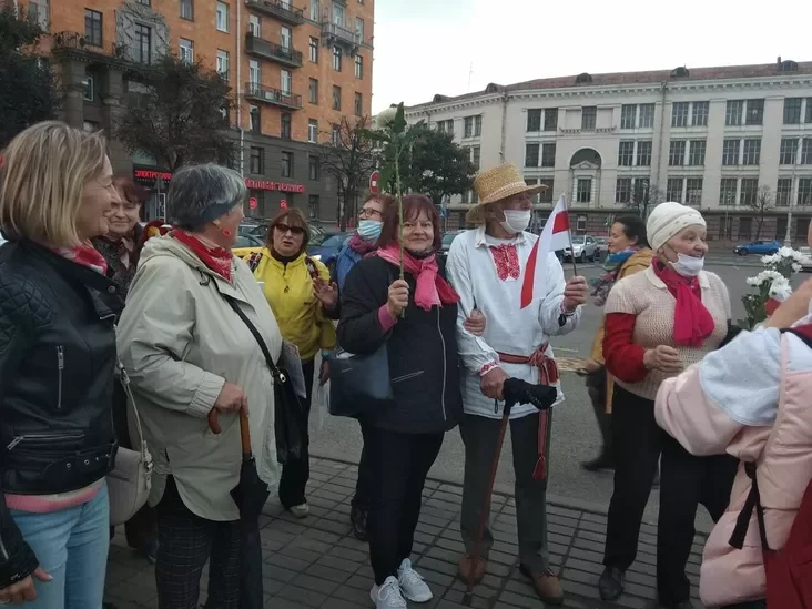Ja tak razzłavałasia! Astatnija piensijanierki, ubačyŭšy ŭdar, padbiehli da mianie. Adna ź ich skazała: «Nas, piensijanieraŭ, źbivajuć mienš za astatnich, tamu my pavinny stajać pieršymi». I my stali ŭ sčepku. I z takoj rašučaściu my stajali, kab tolki nie prapuścić amapaŭcaŭ da ludziej.