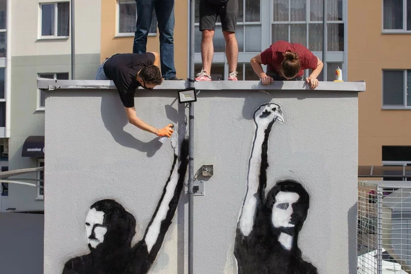 Paźniej Dzijana daviedałasia, što murał nie pavinien byŭ źjavicca ŭ ich dvary. Jaho chacieli raźmiaścić na miescy, dzie dydžei ŭklučyli pieśniu, ale mima prajazdžali siłaviki, i aŭtary murała prosta pabajalisia. U ich było usio hatova, tamu jany prosta raźmiaścili murał na pieršym lepšym miescy, dzie malavać było biaśpiečniej, — na dziciačaj placoŭcy va ŭłasnym dvary.