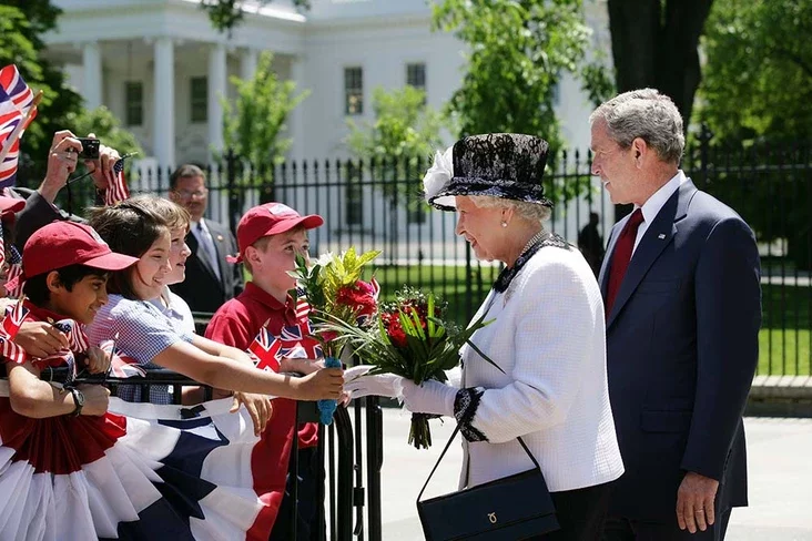 Lizavieta II i prezident ZŠA Džordž Buš kala Biełaha doma, 2007 hod. Fota: The U.S. National Archives
