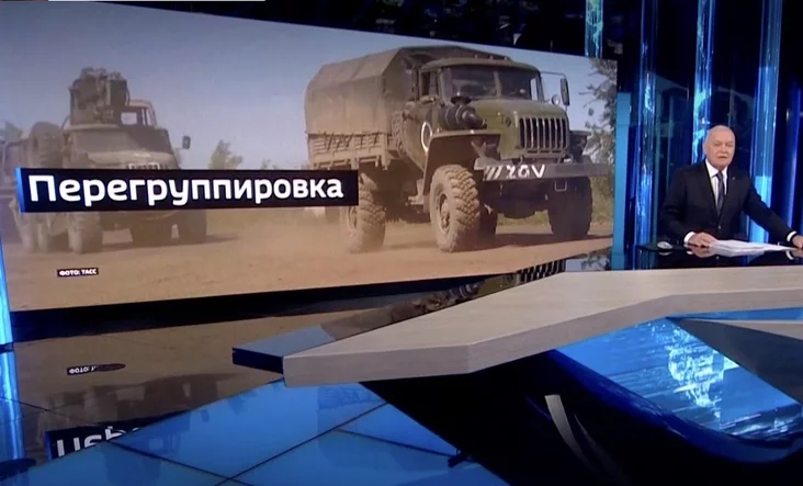 «Vielmi ciažki tydzień na frantach śpiecapieracyi. Pierahrupoŭvańnie našych bajavych paradkaŭ», — adrazu zadaje ton pieradačy Dźmitryj Kisialoŭ, viadučy prahramy, jakaja była amal całkam pryśviečanaja rasijska-ŭkrainskaj vajnie.