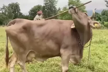 Karova Vieranika navučyłasia časać śpinu švabraj