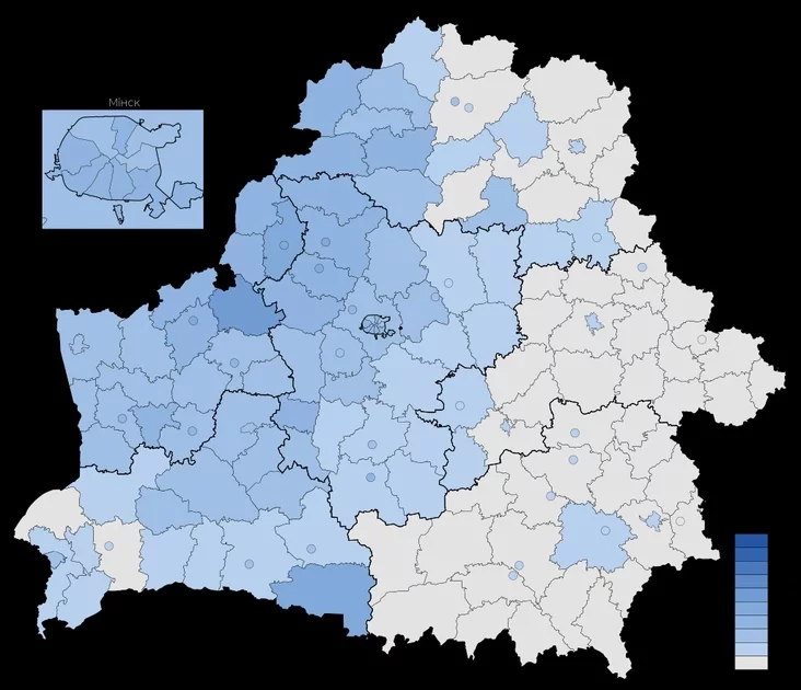 | 4 | Maładziečna | 32.3% | 25.3% | 4.1% | 14.6% | 3.9% | 4.5% |