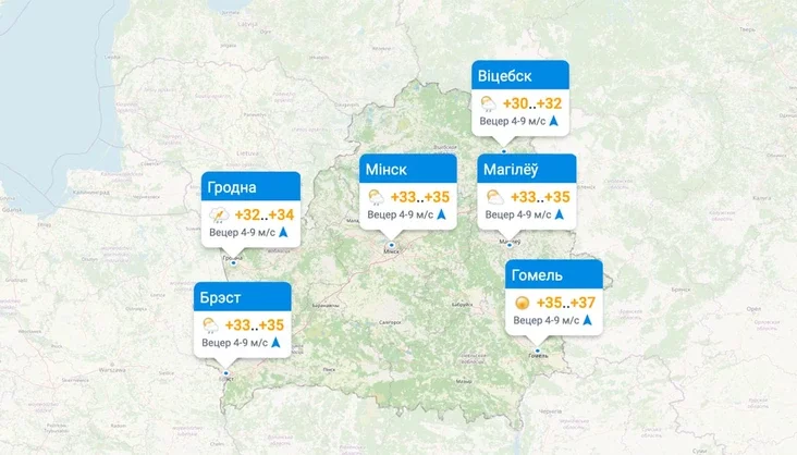 Tolki na Viciebščynie i častkova Haradzienščynie było mienš za 30°C.