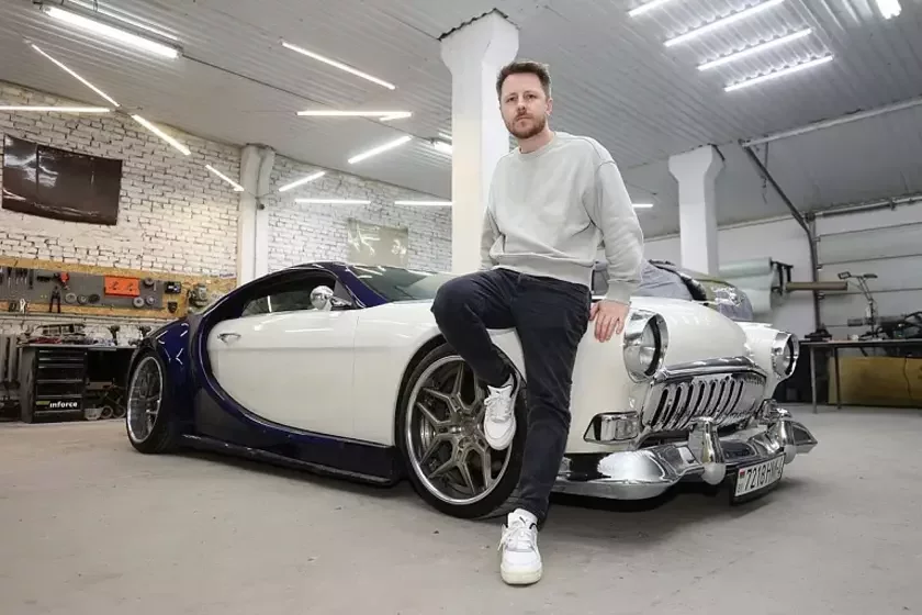 Kastamajziery z Hrodna pabudavali adnu z samych jarkich mašyn u krainie: śpieradu — Vołha, a zzadu Bugatti.