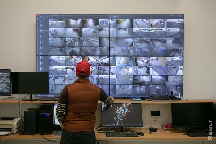 Na ŭsich fota tolki 3 milicyjaniery ŭ čornym, 2 achoŭnika ŭ błakitnym i 1 apieratar videanazirańnia. Ludziej niama.