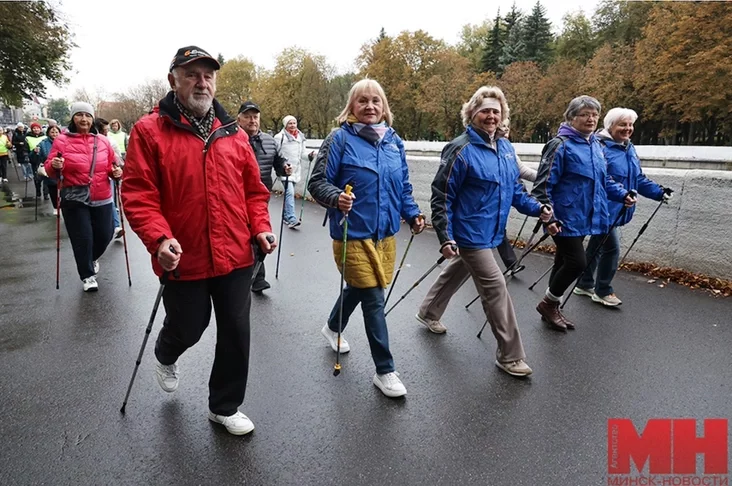 La fantana ŭ parku imia Ja. Kupały pad badzioruju muzyku sotni minčukoŭ z pałkami ŭ rukach rychtavalisia da startu. U adnym z samych malaŭničych kutočkaŭ stalicy razahravalisia pierad marafonam pa skandynaŭskaj chadzie haradžanie «srebnaha» ŭzrostu.