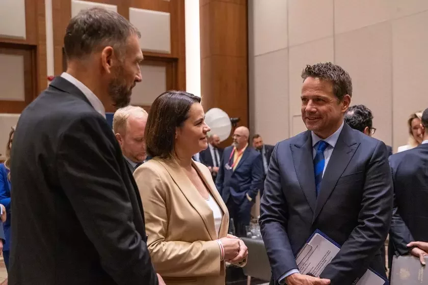Padčas vizitu ŭ Polšču dla ŭdziełu ŭ Varšaŭskim forumie pa biaśpiecy Śviatłana Cichanoŭskaja sustrełasia z meram Varšavy Rafałam Tšaskoŭskim i abmierkavała ź im niekatoryja pytańni biełaruska-polskaj supracy.