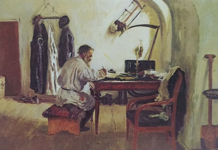 Jak viadoma, Leŭ Mikałajevič byŭ nie tolki hienijalnym piśmieńnikam, ale i pamieščykam, vałodaŭ majontkam, atrymaŭ u spadčynu 330 duš sialan. Voś ź imi jon i kasiŭ.