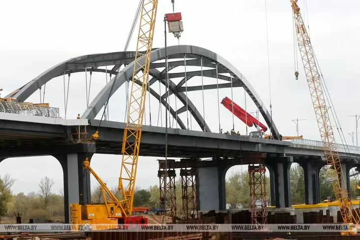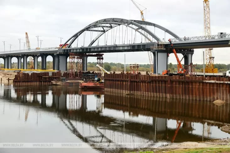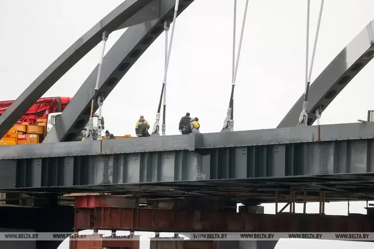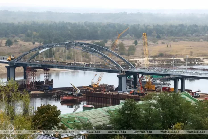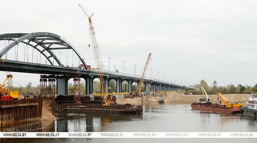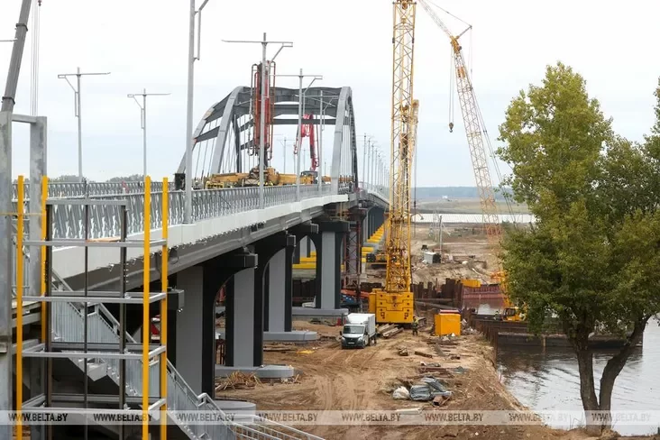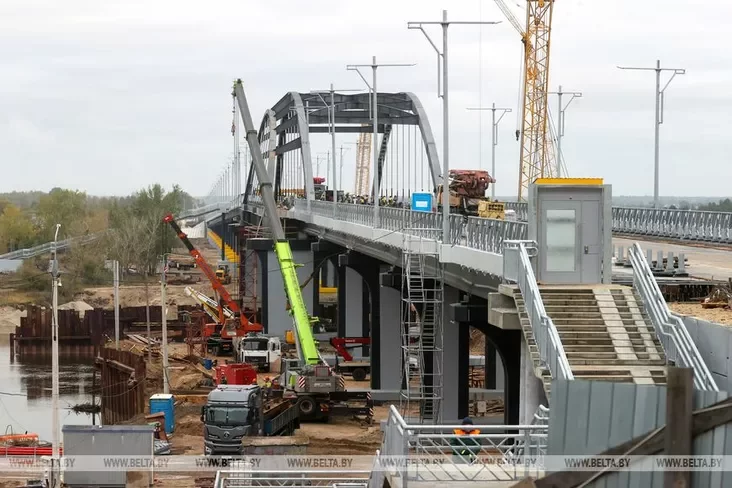 Raboty pa ŭźviadzieńni mosta praz raku Prypiać u Mazyry vychodziać na finišnuju pramuju. Budaŭniki ŭžo pierajšli da dobraŭparadkavańnia abjekta: ustalavany aśviatlalnyja mačty i aharodžy, idzie ich afarboŭka, paviedamlaje Biełta.