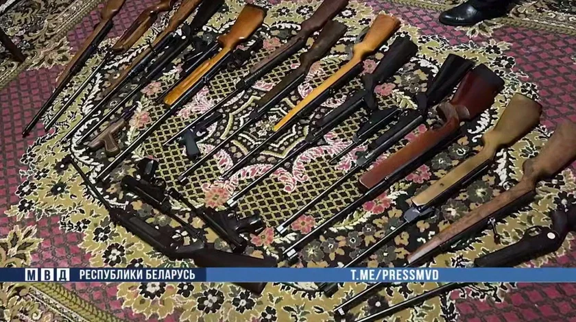 U Miadzielskim rajonie supracoŭniki milicyi znajšli i kanfiskavali ŭ 47‑hadovaha miascovaha žychara 15 pnieŭmatyčnych vintovak i šeść pistaletaŭ.