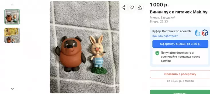 U abjavach na biełaruskich internet-barachołkach Onliner pabačyŭ fihurki pa nievierahodnaj canie ŭ 1000 rubloŭ za paru (Vini-Puch i Piatačok biez pakavańnia).