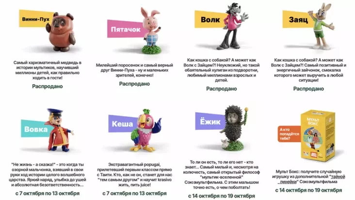 Mak.by zapuściŭ limitavanuju sieryju fihurak u supracoŭnictvie z «Sajuzmultfilmam». U sieryju ŭvajšli papularnyja piersanažy: Vini-Puch i Piatačok, Voŭk i Zajac z «Nu, pačakaj!», lanivy školnik z «Voŭki ŭ Trydziaviatym carstvie», papuhaj Kieša, Jožyk u tumanie i inšyja. Akramia taho, była anansavanaja «Mult Boks» — cacka z tajemnaj liniejki, jakaja vypadkova traplajecca pakupnikam, piša Onliner.