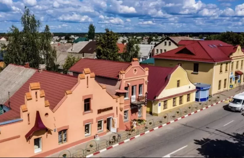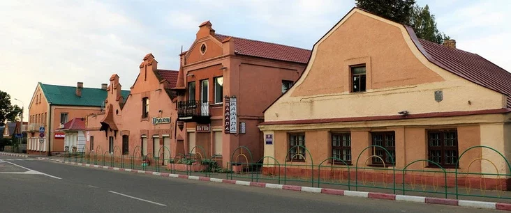 U skład architekturnaha ansambla ŭvajšli dva dvuchpaviarchovyja damy ź niezvyčajnymi vysokimi dachami — «dom doktara» na płoščy Lenina, 4, i «zajezny dom» № 11. Akramia taho, da ich možna dadać try adnapaviarchovyja «damy ramieśnika» z dekaratyŭnymi ščytami i mansardami, a taksama žyły dom ź viežaj, jaki źjaviŭsia ŭ XIX stahodździ paśla źlićcia dvuch susiednich budynkaŭ. Hetyja budynki stali centralnym abjektam handlovaj płoščy rajcentra.