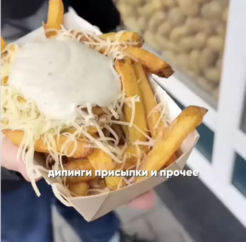 Usie stravy tut robiać sa śviežaj biełaruskaj bulby, jakuju absmažvajuć u alei dva razy. Na vychadnyja tudy vystraiłasia cełaja čarha.