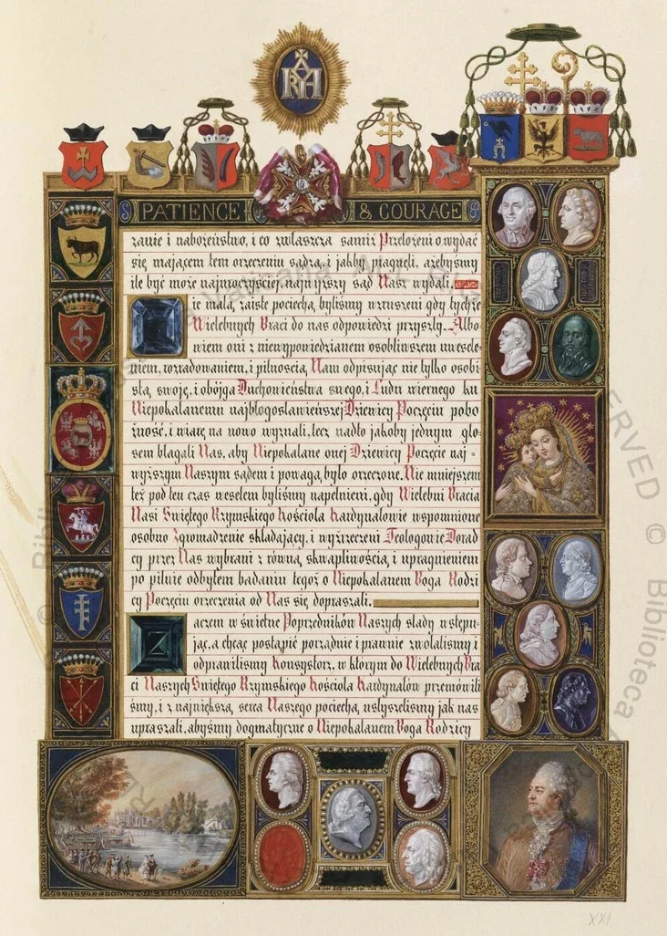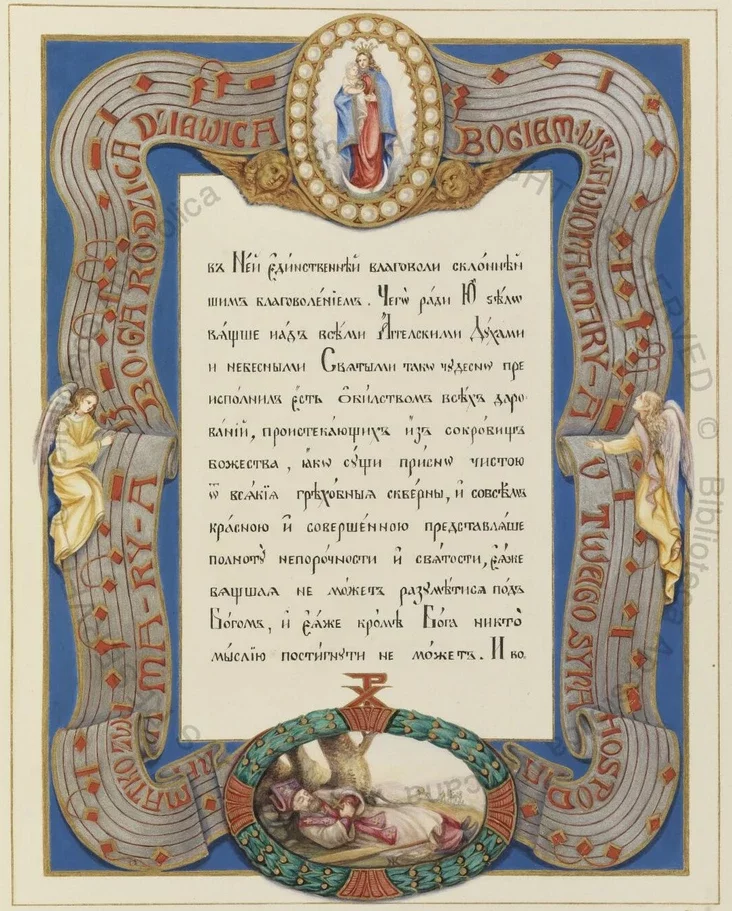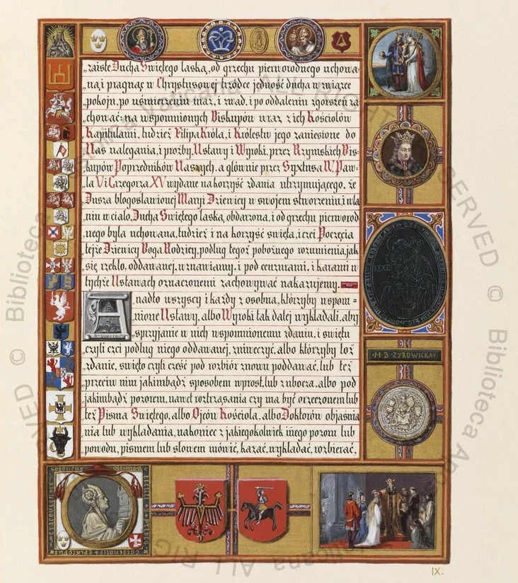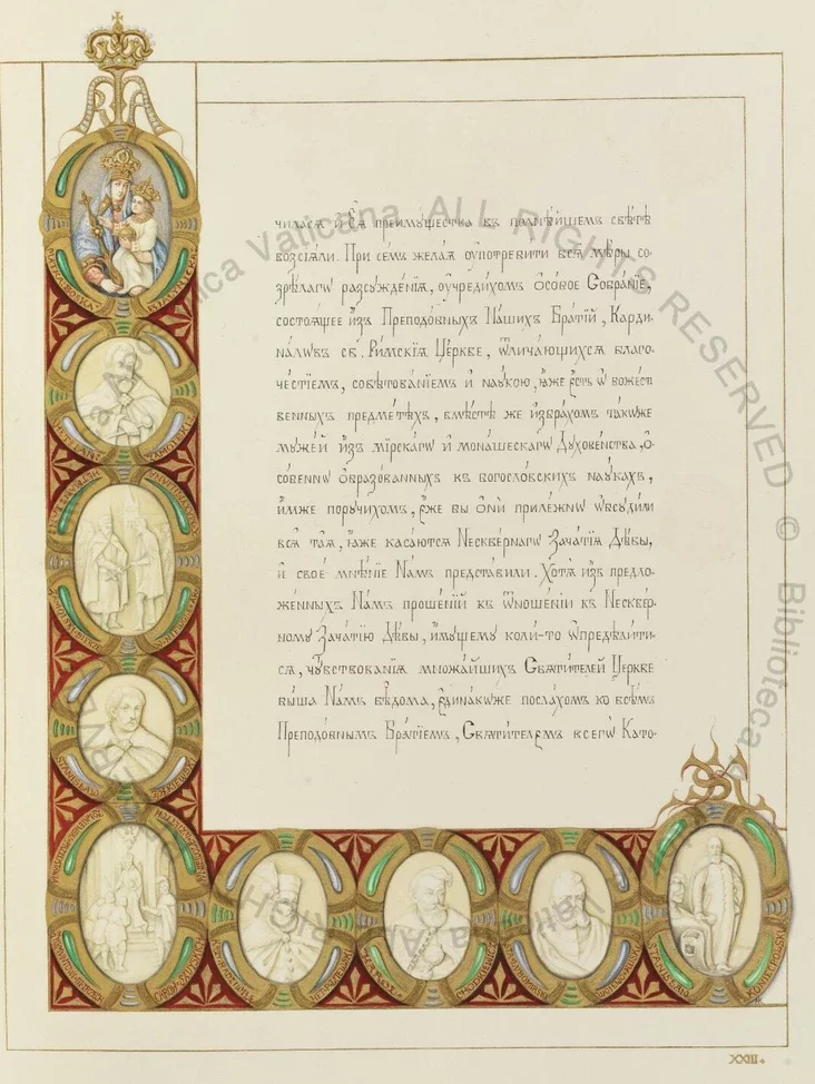 U 1854 hodzie papa Pij IX abviaściŭ dohmat pra Biezzahannaje Začaćcie Najśviaciejšaj Panny Maryi ŭ svajoj bule Ineffabilis Deus. Francuzski teołah Mary-Daminik Sir (1827—1917) prapanavaŭ pierakłaści jaje na jak maha bolš moŭ i aformić kožny pierakład jak unikalny raskošny rukapis z nacyjanalnaj i relihijnaj simvolikaj. Ciaham 1870—1880‑ia hadoŭ u Vatykan było pieradadziena kala trochsot takich albomaŭ.