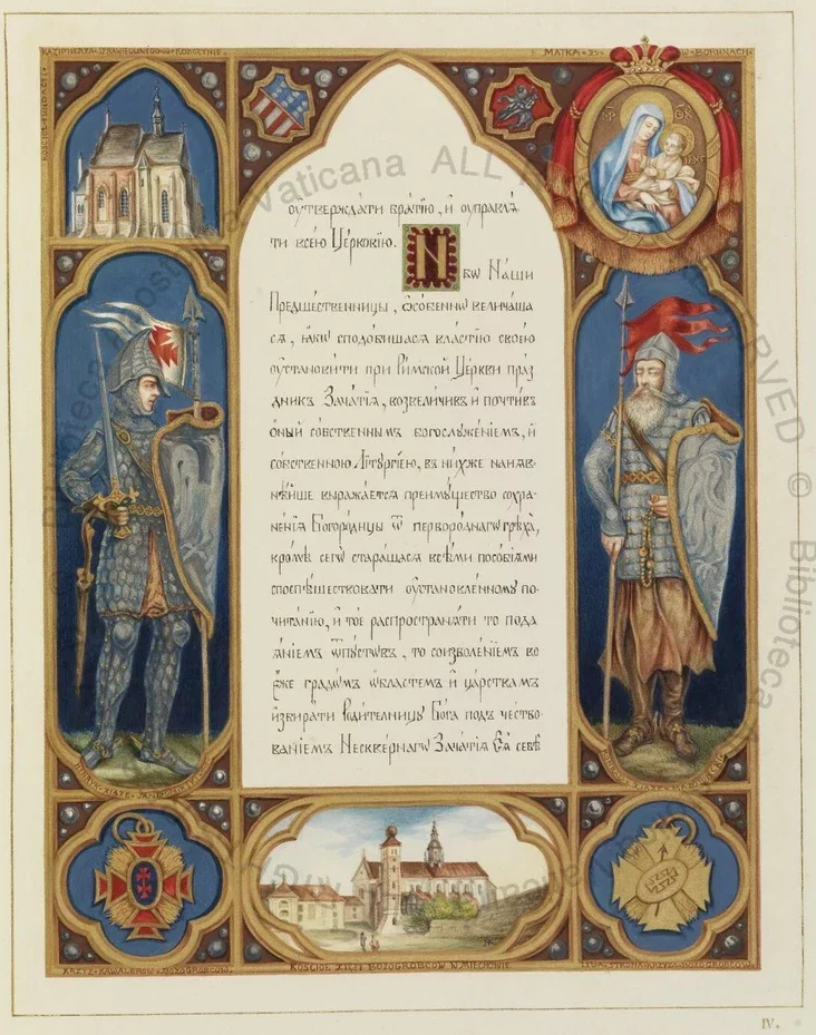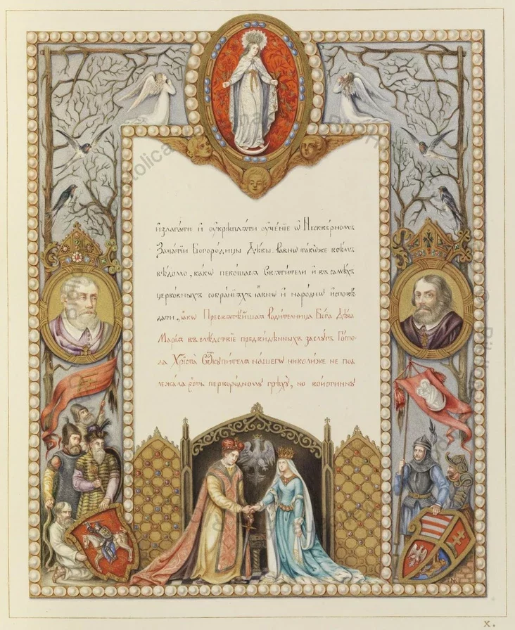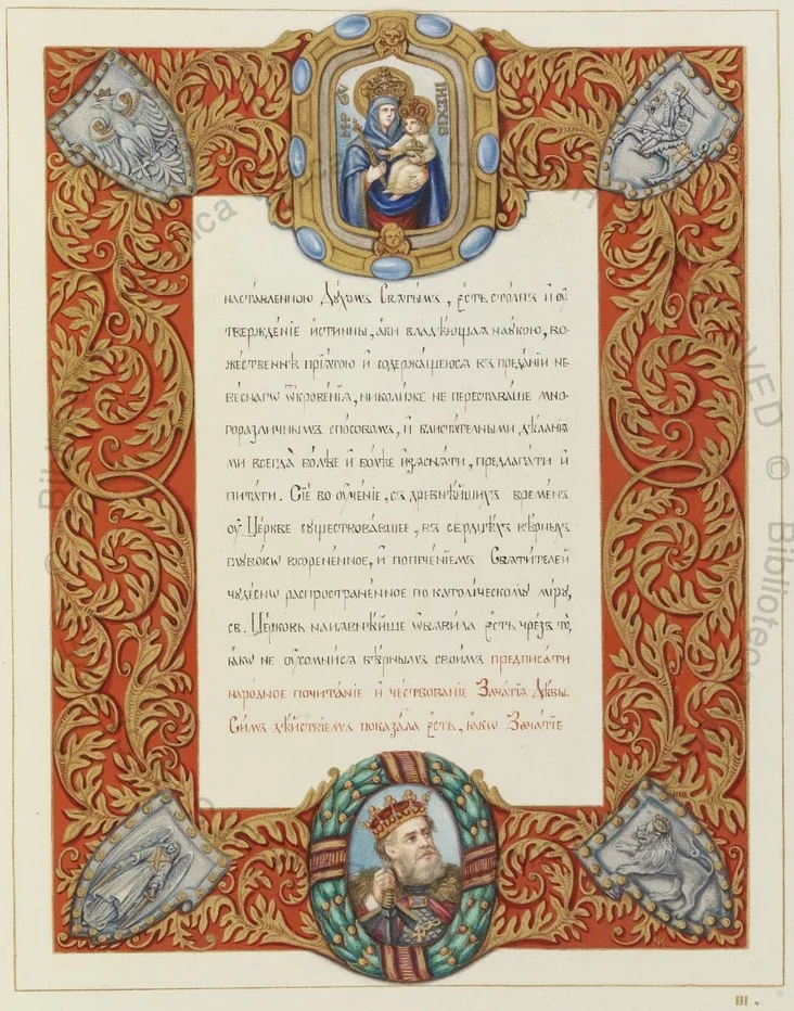 Admietna, što z zachodnich hubierniaŭ Rasijskaj impieryi ŭ Rym trapili adrazu try pierakłady: pa-polsku, pa-litoŭsku i pa-carkoŭnasłaviansku. Heta vyhladaje jak palityčnaja zajava, asabliva ŭ śviatle taho, što ŭ čas paŭstańnia 1863 hoda, jakoje ŭžo było nie za harami, znoŭ viarnulisia da idei adradžeńnia Rečy Paspalitaj troch narodaŭ — palakaŭ, litoŭcaŭ i rusinaŭ.