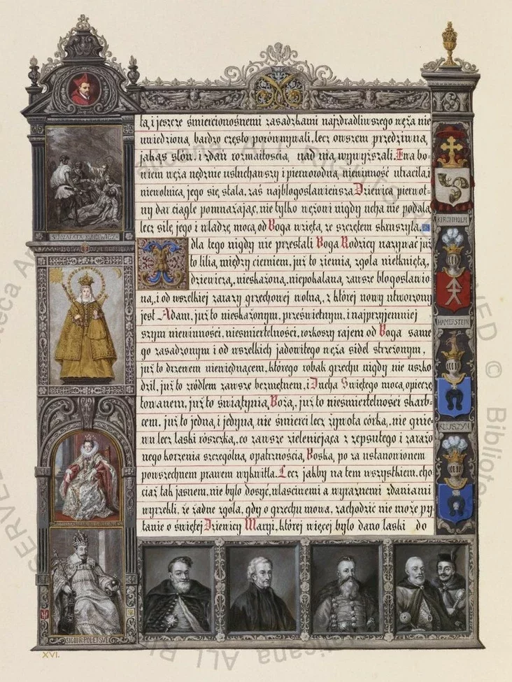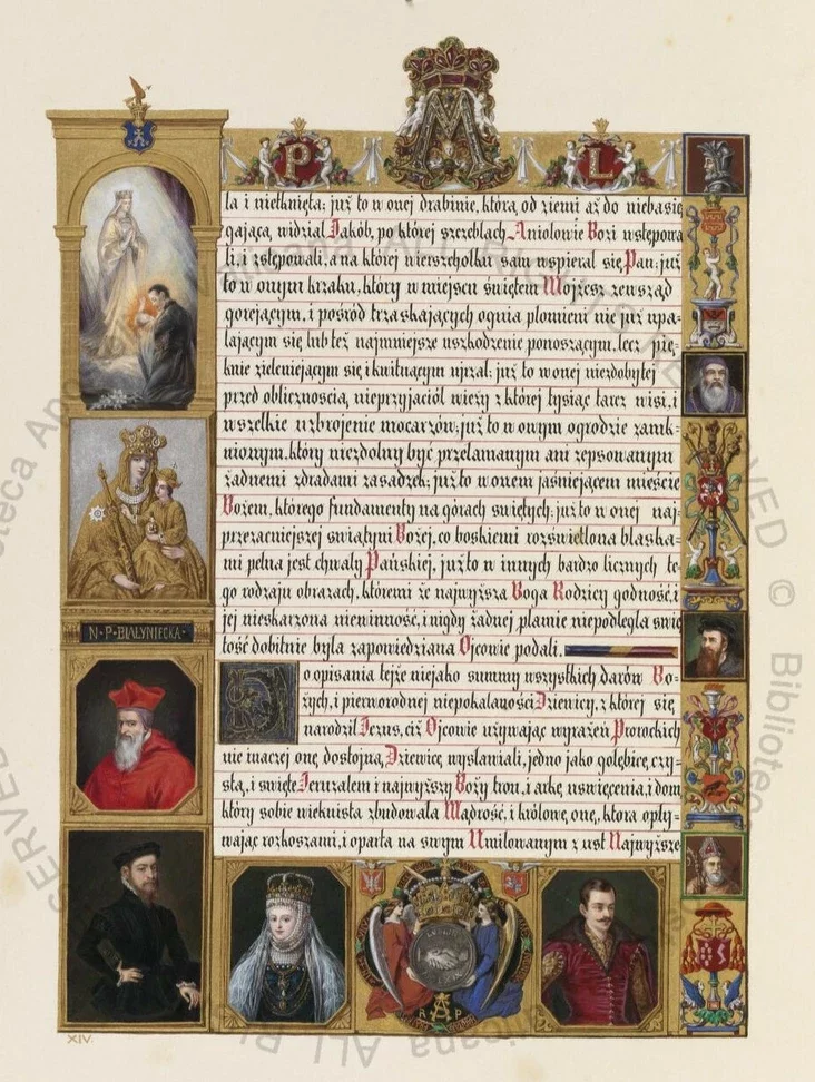 Polski i carkoŭnasłavianski varyjanty ilustravanyja minijaciurami z važnymi histaryčnymi padziejami i postaciami Polščy i Vialikaha Kniastva Litoŭskaha, časta źmiaščajuć vyjavy «Pahoni», hierbaŭ roznych šlachietnych rodaŭ i simvały vyzvalenčaj baraćby.