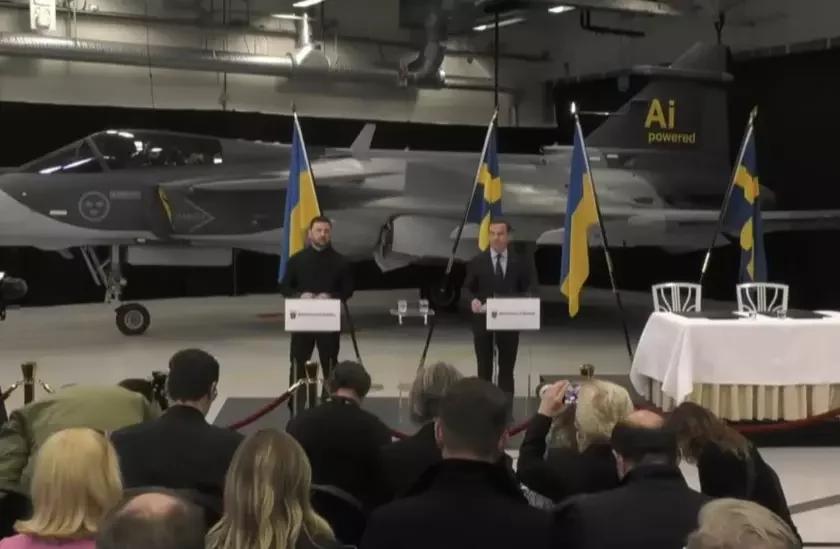 Premjer-ministr Šviecyi Ulf Krystersan i prezident Ukrainy Uładzimir Zialenski padpisali list ab namierach, jaki adkryvaje šlach da maštabnaj ekspartnaj ździełki pa prodažy šviedskich źniščalnikaŭ Gripen.