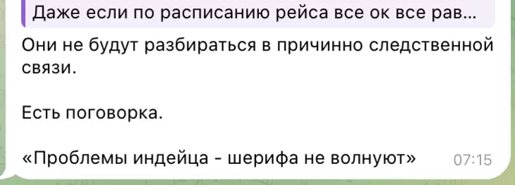«Jany nie buduć raźbiracca ŭ pryčynna-vynikovaj suviazi. Jość prymaŭka: «Prablemy indziejca šeryfa nie chvalujuć», — žartujuć.