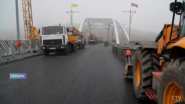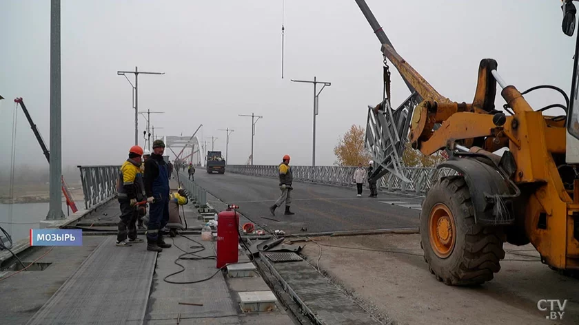 U Mazyry zaviaršajuć rekanstrukcyju adnaho z samych doŭhich i značnych mastoŭ krainy, jaki złučaje Mazyr i Kalinkavičy praz Prypiać. Ahulny košt prajekta pieravysiŭ 160 miljonaŭ rubloŭ, a raboty vialisia paskoranymi tempami — na praciahu 25 miesiacaŭ, paviedamiła STB.