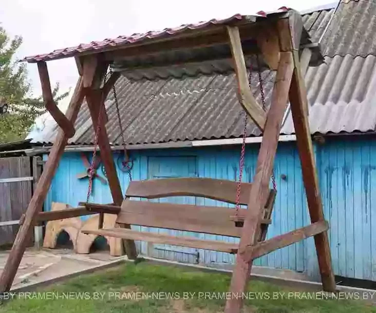 «Unučka mianie časam nazyvaje «dzied Lap-lap». Kali jaje spać kładuć, mnie kažuć: «Nie lapaj, a to pabudziš». Dla jaje zrabiŭ dziciačuju horku», — pakazvaje mudrahielistuju kanstrukcyju ź leśvičkami Juryj Sierhijevič. — Ciapier majstruju łaŭku. Chočacca zrabić jaje aryhinalnaj, dumaju prymajstravać da nožak stupni z palcami. A voś heta budzie stolik. Nohi ŭ jaho padobnyja na čałaviečyja. Pryčym heta pryroda sama tak zrabiła. Mnie zastałosia tolki padšlifavać».