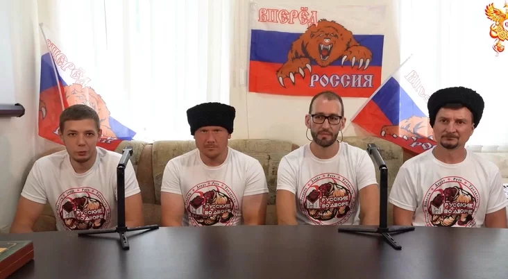 Aficyjna zasnavalniki navat prapisali pryncypy ruchu: biez palityki i relihii. Hetyja temy, maŭlaŭ, padzialajuć ruskich ludziej. Ale biez palityki nie atrymałasia. Voś tak vyhladaje typovaja sustreča «Russkije vo dvorie». Udzielniki trymajuć ściahi ultrapravych i ksienafobskich ruchaŭ «Paŭnočny čałaviek», «Ruskaja abščyna» i «RND».