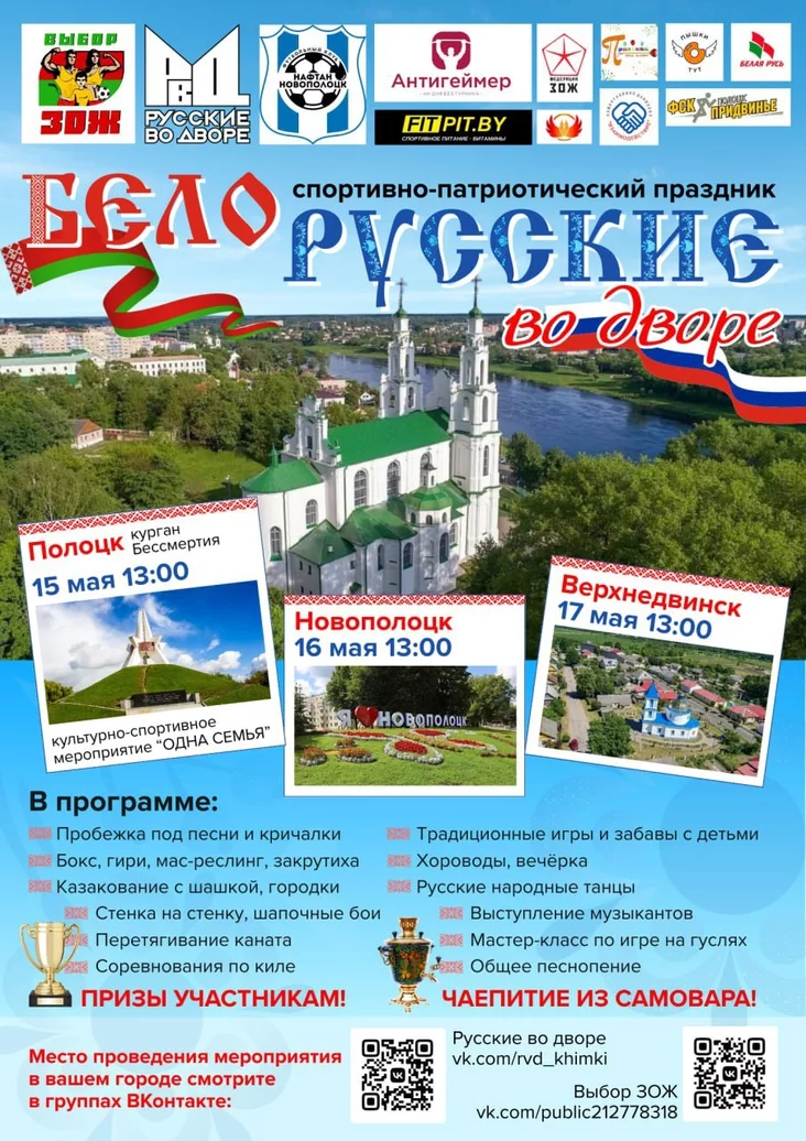 «Russkije vo dvorie» pačali aktyŭna pracavać ź biełaruskimi dziećmi. U mai ruch sumiesna z «Vybor-ZOŽ» prakaciŭsia pa Viciebskaj vobłaści. U Połacku, Navapołacku i Vierchniadźvinsku jany arhanizavali spartyŭnaje śviata pad nazvaj «BiełoRusskije vo dvorie».