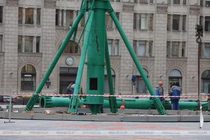 Na Kastryčnickaj płoščy ŭ Minsku pačali stavić navahodniuju jołku FOTAFAKT