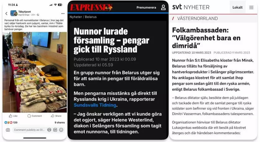 U carkvie nievialikaha šviedskaha horada Tebiu, jaki znachodzicca niepadalok ad Stakholma, zaŭvažyli handlarak ad minskaha Śviata-Jelisaviecinskaha manastyra, piša Narodnaja ambasada Biełarusi ŭ Šviecyi.