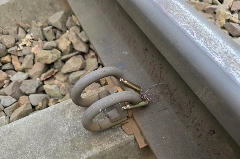 Na čyhunačnych rejkach u Polščy znajšli patrony, złučanyja drotam