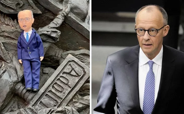 Havorka pra fiederalnaha kanclera Hiermanii Frydrycha Mierca. Na fonie padtrymki Ukrainy z boku ES i ŭ pryvatnaści Hiermanii rasijskaja prapahanda pradstaŭlaje sučasnych niamieckich čynoŭnikaŭ jak naščadkaŭ nacystaŭ.