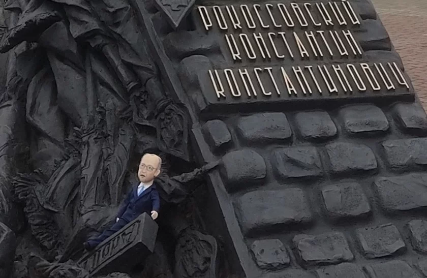 Rasijanie ŭ Homieli zachacieli ŭčynić mižnarodny skandał. Što za tajamničaja lalka była na pomniku Rakasoŭskamu