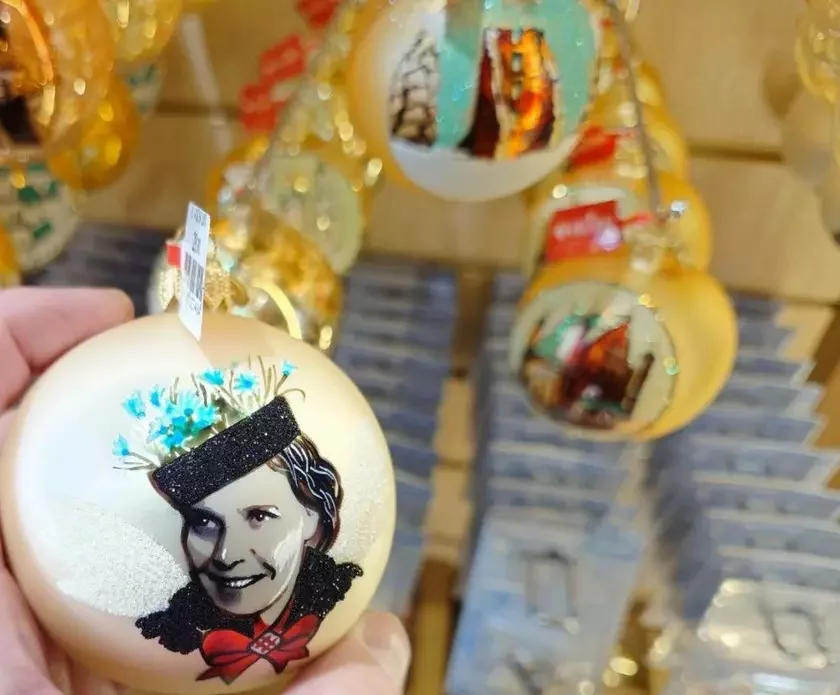 Niadaŭna «Kaladnaja krama», što mieścicca na vulicy Kalcova ŭ Minsku, pačała pradavać sieryju jołačnych šaroŭ z partretami biełaruskich piśmieńnikaŭ i aśvietnikaŭ. Siarod ich byli Vasil Bykaŭ, Francysk Skaryna, Janka Kupała, Maksim Bahdanovič, Uładzimir Karatkievič i inšyja. Była i Łarysa Hienijuš, i mienavita da jaje asoby dačapilisia prapahandysty.