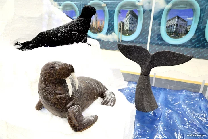Jość i inšyja mini-scenki z žyviołami — siemji miadźviedziaŭ, maržy, aleń na samalocie.