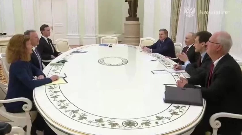 Prezident Rasii Uładzimir Pucin pačaŭ sustreču z pradstaŭnikami prezidenta ZŠA Styvam Uitkafam i Džaredam Kušnieram. Kadry ź mierapryjemstva apublikavała pres-słužba Kramla.