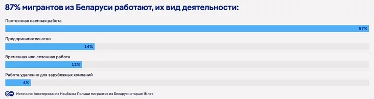 Bolšaść biełarusaŭ (kala 56%) emihravali z-za palityčnaj situacyi ŭ RB i strachu represij. Ekanamičnyja pryčyny nazvali 32% apytanych.
