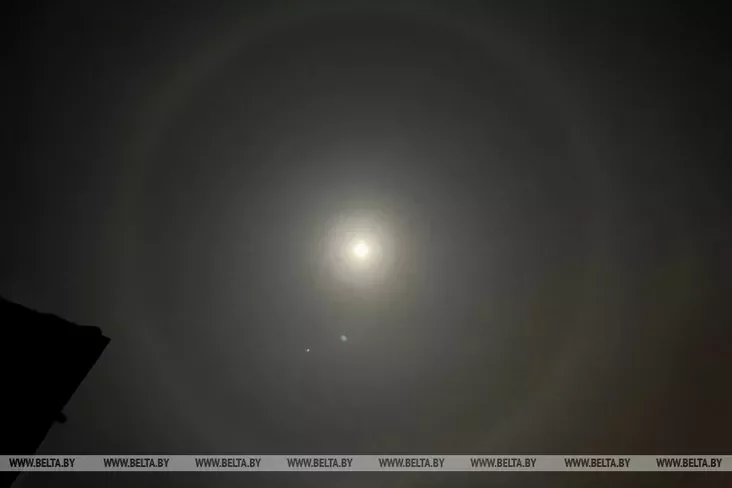 Miesiačnaje hało ŭjaŭlaje jano saboj tumannaje śvietłaje koła, u centry jakoha i znachodzicca spadarožnik našaj płaniety. Siońnia nočču žychary Minska i Minskaj vobłaści nazirali jaho, piša Biełta.