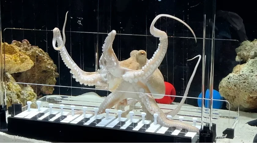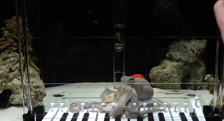 Šviedski muzykant i videabłohier Macijas Kranc staŭ pieršym u śviecie čałaviekam, jaki zdoleŭ navučyć svajho vaśminoha hulać na pijanina. Na treniroŭki jon patraciŭ niekalki miesiacaŭ i sotni hadzin, pierš čym jaho hadavaniec pa mianušcy Taka syhraŭ miełodyju Baby Shark — chacia i nie zusim traplaŭ u rytm. Videa z hetym ekśpierymientam sabrała ŭžo bolš za šeść miljonaŭ prahladaŭ, piša The Washington Post.