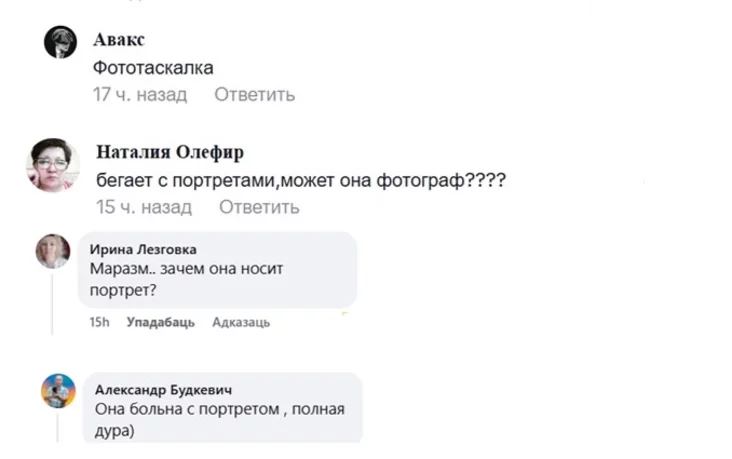 «Fotaciahałka», «Biehaje z partretami, moža, jana fatohraf?», «Marazm… Našto jana nosić partret? Jana chvoraja z partretam, zusim durnaja».