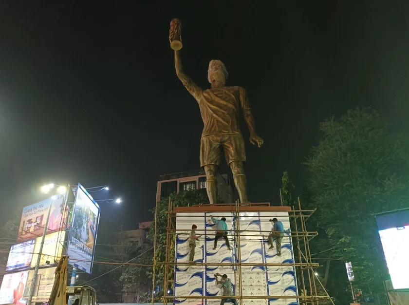 U kampanii z adnakłubnikami pa «Inter Majami» Łuisam Suaresam i Radryha de Paŭlem vaśmirazovy pieramožca «Załatoha miača» prezientuje statuju siabie ŭ Kalkucie ŭ subotu.