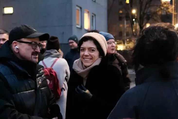 Taćciana Chomič paśla vychadu na volu 123 palitviaźniaŭ (u tym liku Kaleśnikavaj). Vilnia, 13 śniežnia 2025 hoda. Fota: «Lusterka»