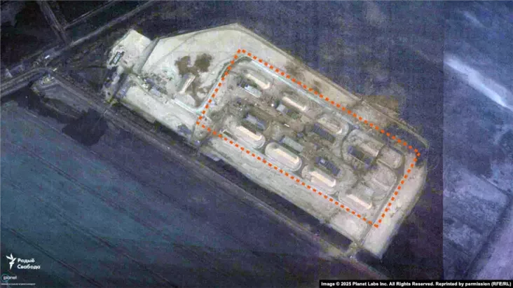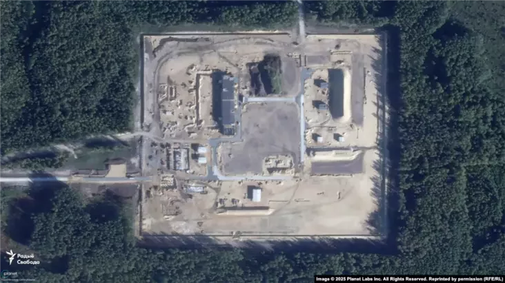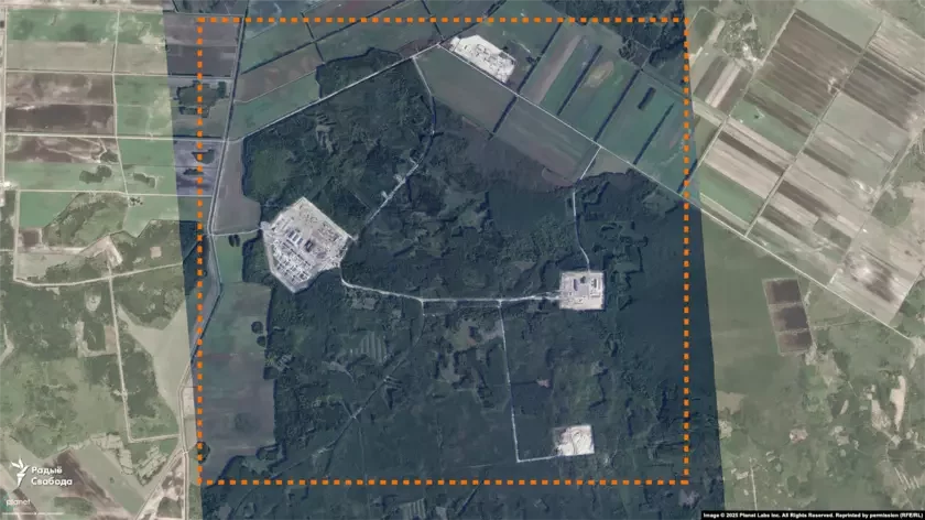 Na spadarožnikavych zdymkach servisu Planet Labs, što atrymała «Svaboda» za 2025 hod, bačna, što abjekt budaŭnictva maje čatyry asobnyja častki — asnoŭnuju i try amal roŭnyja pa płoščy pamiž saboj pobač. Usie jany złučajucca novapabudavanymi darohami.
