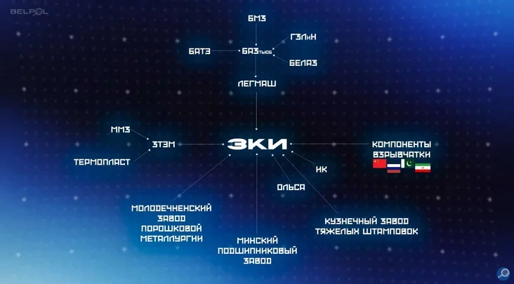 Pavodle źviestak «Biełpoł», Minski padšypnikavy zavod užo pačaŭ rychtavać karpusy snaradaŭ kalibra 152 mm, Maładziečanski zavod paraškovaj mietałurhii naładžvaje vypusk uzryvalnikaŭ da reaktyŭnych snaradaŭ, a zavody «BMZ», «BiełAZ» i «Lehmaš» zadziejničany ŭ pastaŭkach miechaničnych kamplektujučych.