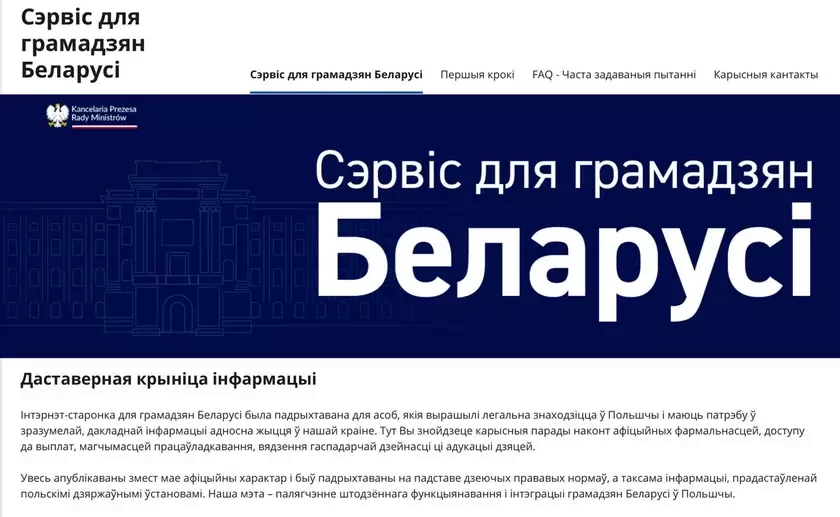 22 śniežnia 2025 hoda pačaŭ funkcyjanavać aficyjny ŭradavy servis na biełaruskaj movie dla hramadzian Biełarusi, jakija žyvuć u Polščy, paviedamili ŭ Abjadnanym pierachodnym kabiniecie Biełarusi.