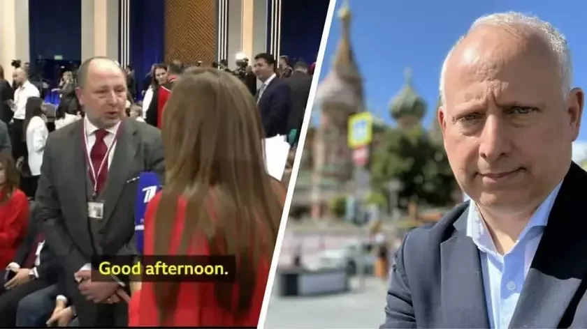 Padčas padrychtoŭki da pramoj linii z Uładzimiram Pucinym prapahandystka ź Pieršaha kanała ŭziała intervju ŭ mužčyny, jakoha pradstaviła viadomym brytanskim žurnalistam Bi-bi-si Styvam Rozienbierham.