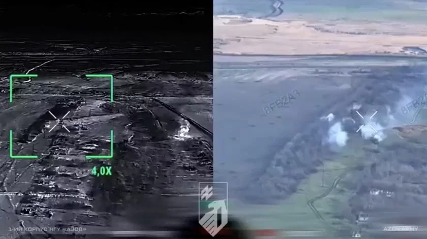 Videa publikuje 1‑y korpus NHU «Azoŭ», jaki trymaje kirunak razam z šeraham sumiežnych padraździaleńniaŭ, siarod jakich «Hrupa Łazara».