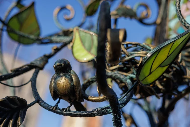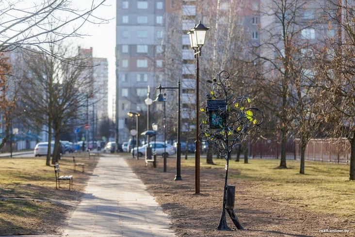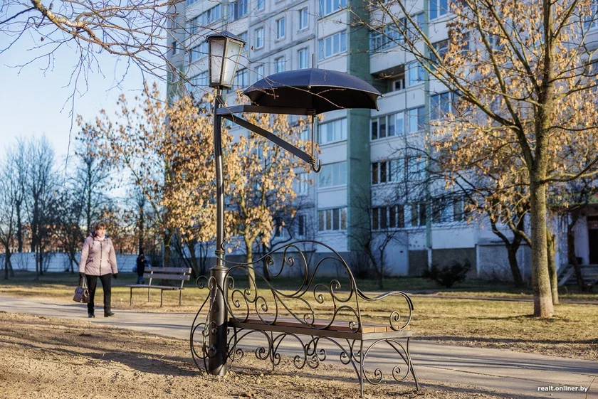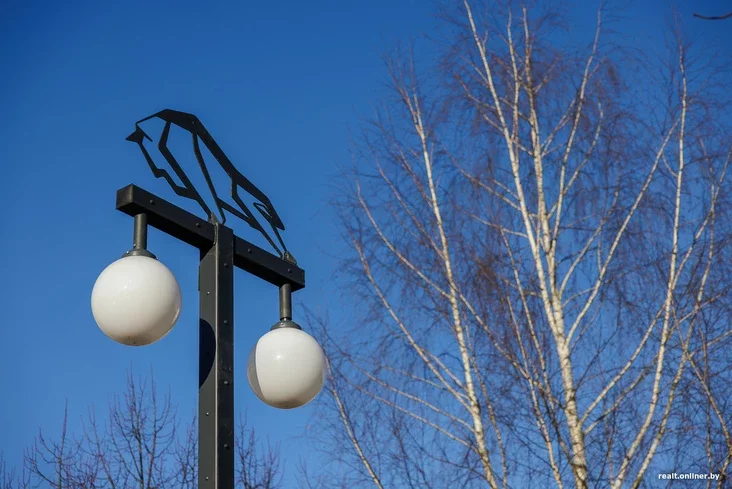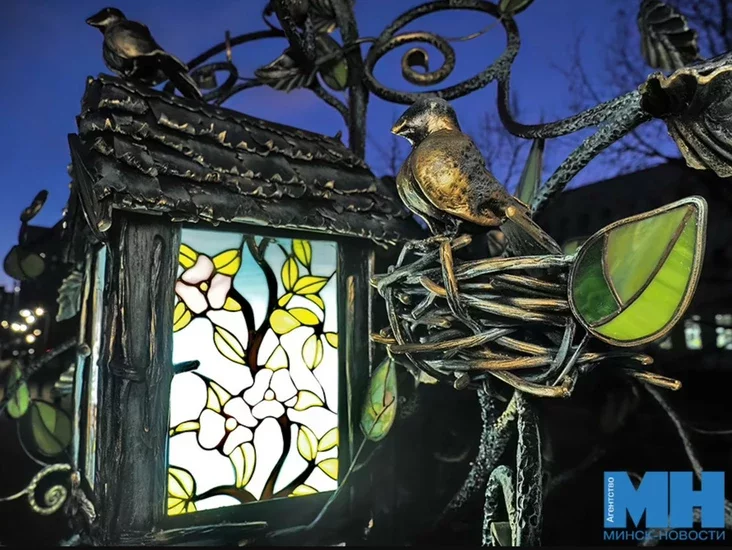 Miesca atrymałasia raznastajnym — tut jość i kłasičnyja madeli lichtaroŭ, i minimalistyčnyja, a taksama zusim niestandartnyja varyjanty: lichtar z parasonam, z zubram… Adzin ź ich asabliva pryciahvaje ŭvahu — jon upryhožany vitražami, kavanymi halinami i ptuškami na ich.