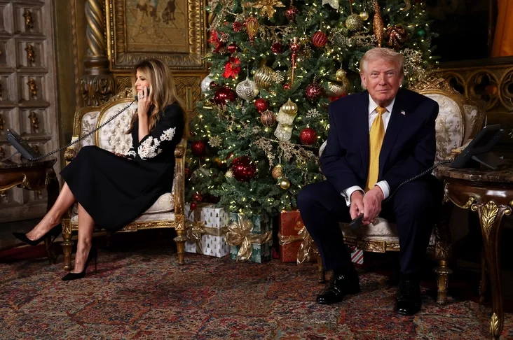 Tym časam prezident ZŠA Donald Tramp sustreŭ Kalady ŭ svajoj rezidencyi Mar-a-Łaha ŭ Fłarydzie. U sieradu ŭviečary jon razam sa svajoj žonkaj pa tradycyi prymaŭ zvanki dziaciej, jakija cikavilisia miescaznachodžańniem Santa-Kłaŭsa.